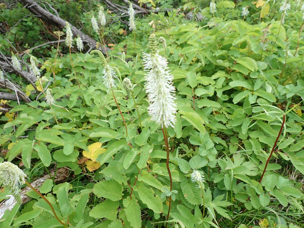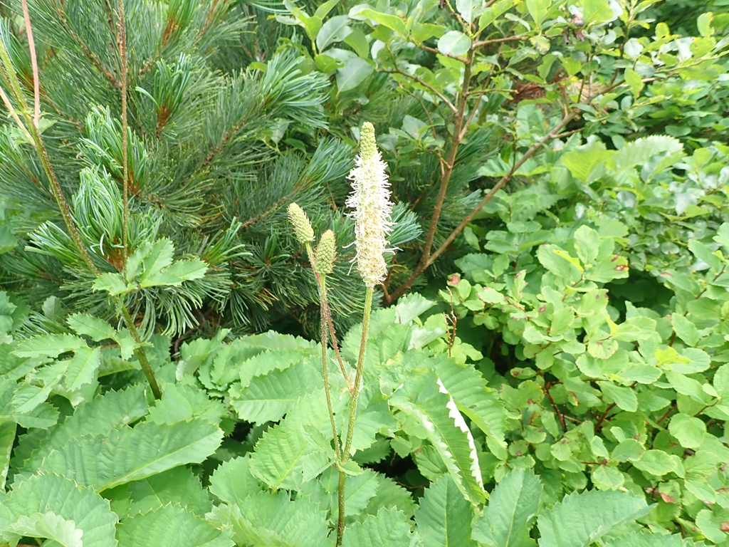 タカネトウチソウ 白系 2021.05.062023.08.24 (バラ科)(花色:白色)(季節)(特徴)花序は下から上へ咲く。葉は卵円形で鋸歯がある。(付記) 2018.08.3 尾瀬 2022.8.6 白雲岳避難小屋近く 2022.8.7 忠別岳付近 2023.8.4 斜里岳