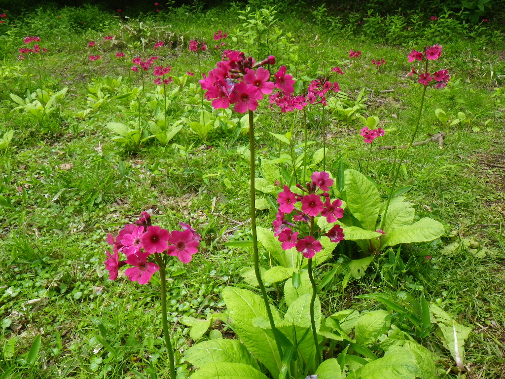 クリンソウ 赤系 2021.04.302021.06.05 (サクラソウ科)(花色:濃いピンク)(季節)(特徴)幾重にも段になって咲くので塔の九輪に見立てた和名。 葉は、倒卵状長楕円形で、表面にしわが多い。 2017.06.09谷川岳2014.6.21庚申山