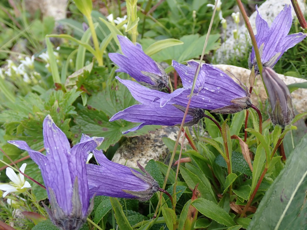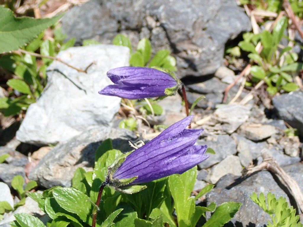 チシマギキョウ 青系チシマギキョウ 2021.05.062025.08.05 (キキョウ科)(花色:青)(季節)(特徴)花冠は5裂し、長さ3cm、裂片の縁に長い毛がある。ガク片は鋭角の三角状で、鋸歯はない。(付記)似た花 2018.7.18 赤石岳の下 2016.8.5 飯豊 2018.8.27 北岳 2025.07.28 鹿島槍ヶ岳