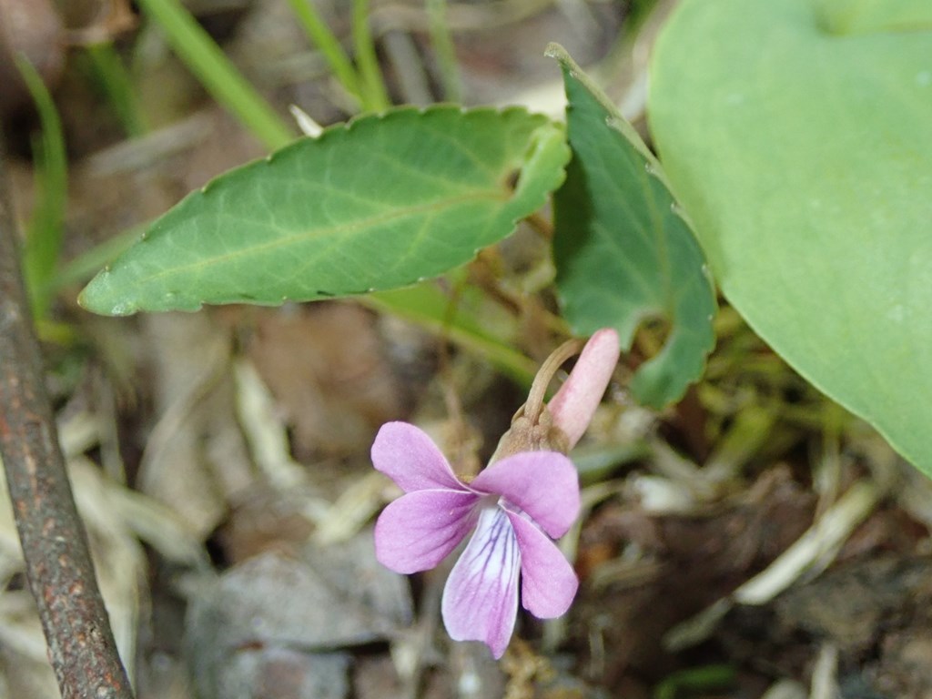 マキノスミレ 赤系 2021.05.092021.05.19 (スミレ科)(花色:ピンク)(季節)(特徴)シハイスミレ・ヒナスミレに似るシハイスミレ 距はマキノより短い。葉は長披針形だが、マキノより丸みがある。葉裏は紫がかる。葉脈上に斑が入ることが多い。マキノスミレ 距は長め。葉は長披針形。葉裏は淡緑色。ヒナスミレ 一回り大きい。内側に毛がある。葉の基部の湾入が深い。 2016.6.8 佐渡