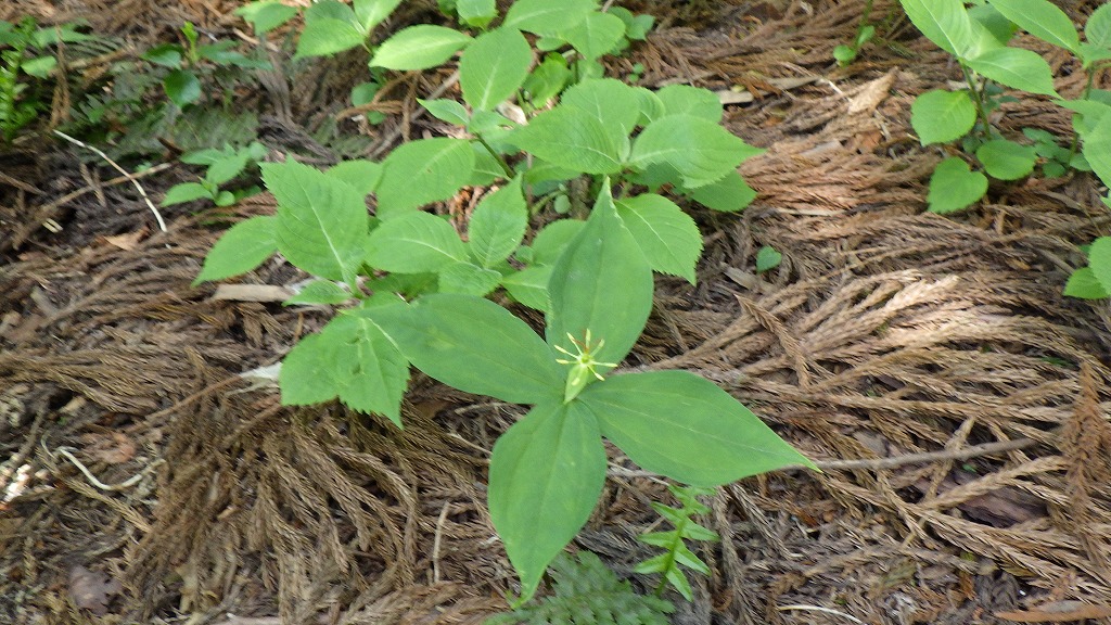 ツクバネソウ 緑系 2021.05.092022.06.21 (ユリ科)(花色:ウス緑)(季節)(特徴)(付記)黒い実がなり、それがガクと合わせてツクバネに似るのでこの名がある。雌しべは先が4つに割れる。雄しべは8本。 2017.06.24 浅草岳 2016.06.4 佐渡 2021.5.30 仙女平 2019.9.18 高陽山