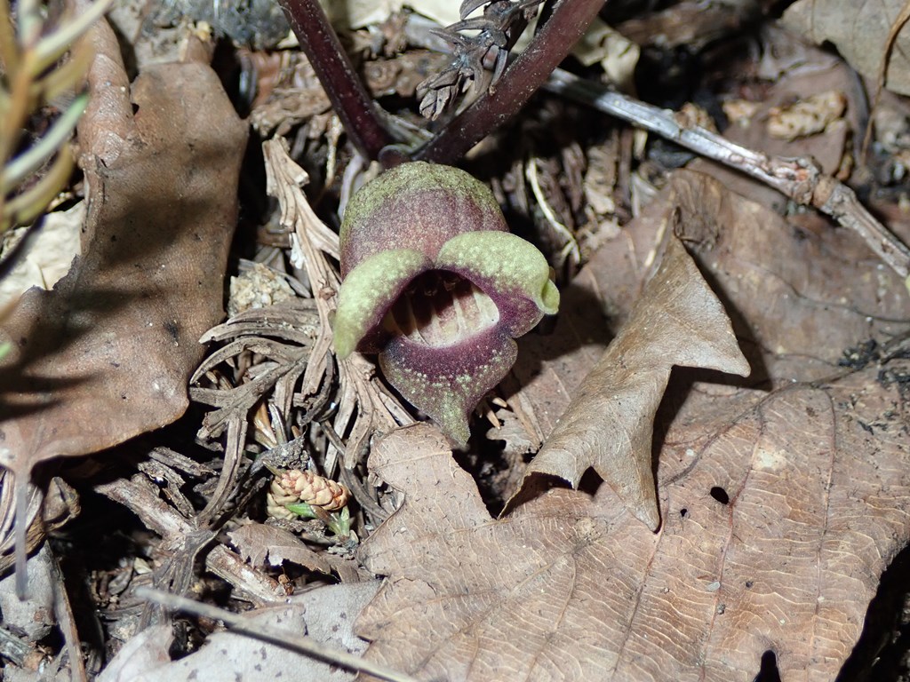 トウゴクサイシン その他 2021.05.11 (ウマノスズクサ科)(花色:茶色)(季節)(特徴)花の入口が広い。オクエゾサイシンは花の先がつぼまっているので狭くなっている。(付記) 2021.5.7高陽山2021.5.7高陽山