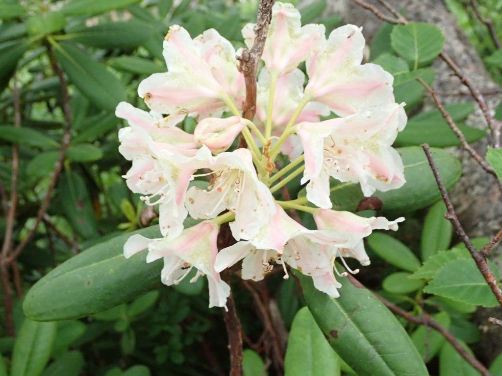 ハクサンシャクナゲ 赤系 2021.04.302022.07.13 (ツツジ科)(花色:かなり薄いピンク、白)(季節)(特徴) 2018.07.18赤石岳下 2020.7.5五葉山 2022.7.8 社山
