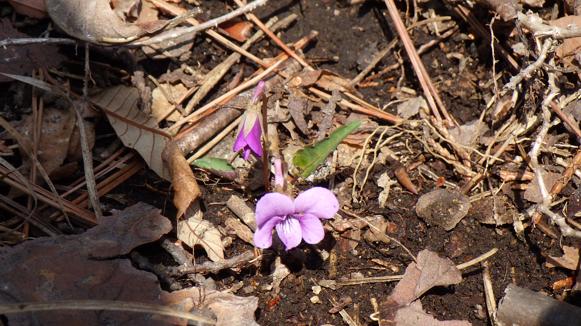シハイスミレ 赤系 2021.05.19 (スミレ科)(花色:ピンク)(季節)(特徴)マキノスミレ・ヒナスミレに似る。 シハイスミレ 距はマキノより短い。葉は長披針形だが、マキノより丸みがある。葉裏は紫がかる。葉脈上に斑が入ることが多い。マキノスミレ 距は長め。葉は長披針形。葉裏は淡緑色。ヒナスミレ 一回り大きい。内側に毛がある。葉の基部の湾入が深い。(付記) 2016.4.6奈良部山南東尾根