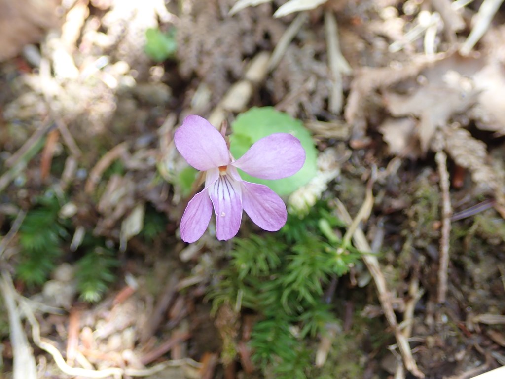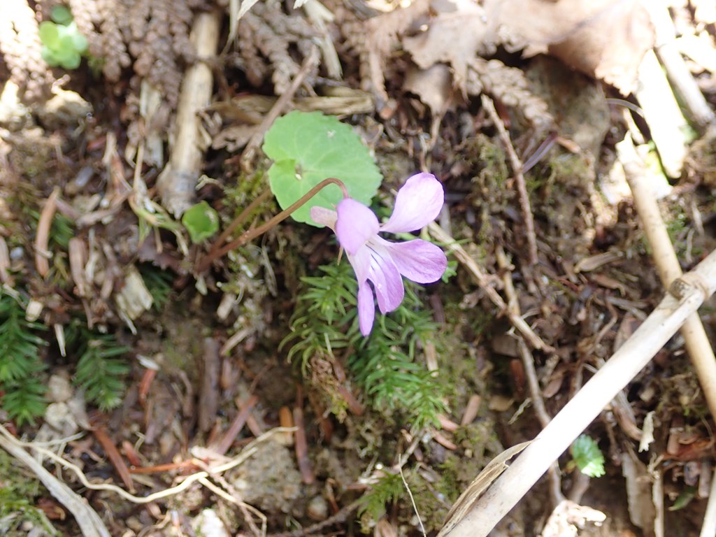 ミドリフジスミレ 赤系 2021.05.29 (スミレ科)(花色:薄紫色)(季節)(特徴)花:紫色の筋がある。葉は丸い。(付記)葉に斑があるとフジスミレ。斑が無いとミドリフジスミレ。 2021.5.28 四郎沢2021.5.28 四郎沢