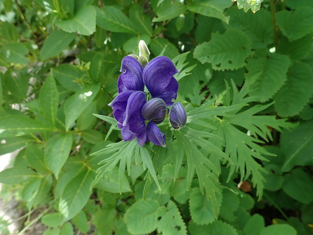 ダイセツトリカブト 青系 2022.08.23 (キンポウゲ科)(季節)8月(特徴)(付記)大雪山山には他にエゾホソバトリカブトがあり、違いは花柄と上萼片に開出毛と腺毛が生えるのが本種で、屈毛が生えるのがエゾホソバトリカブトである。 2022.8.6 白雲岳避難小屋近く
