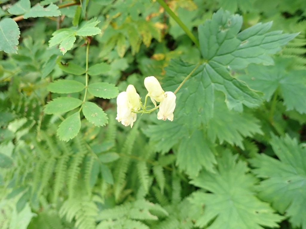 エゾレイジンソウ 白系 2022.08.24 (キンポウゲ科トリカブト属)(季節)8月(特徴)(付記)普通のレイジンソウがうす紫なのに対し、これは黄緑からうすクリーム色の目立たない色ですが、花序が独特なので草地の中でも判りやすい。 2022.8.7 忠別池付近