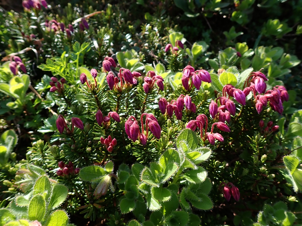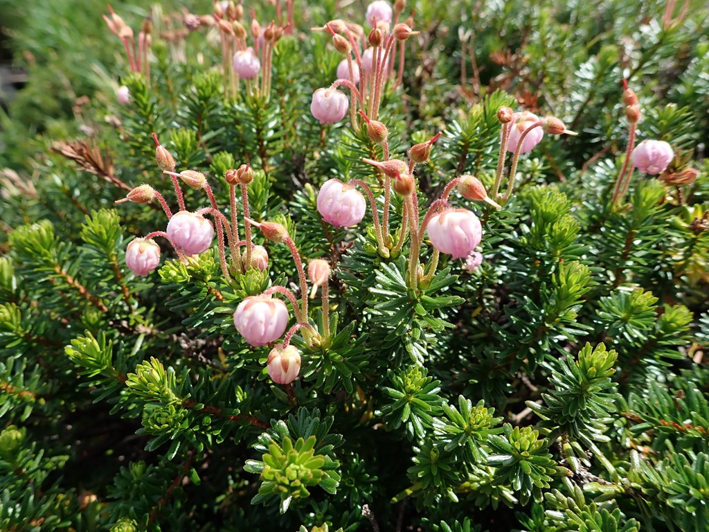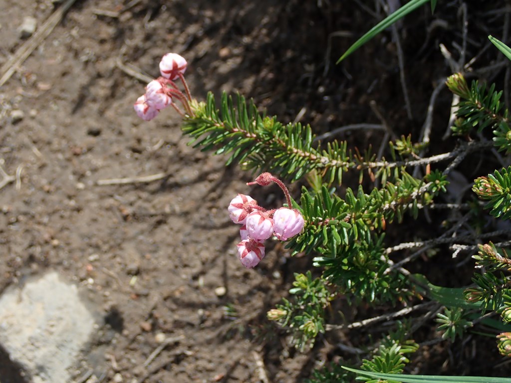 エゾツガザクラ 赤系 2022.08.242024.07.15 (ツツジ科)(花色:ピンク)(季節)(特徴)(付記)アオノツガザクラとの交雑がすすみ、つぼ型が多いが、本来はラグビーボールのように細長い。 2022.8.6 白雲岳北 2022.8.6 白雲岳北 2024.06.30 羅臼岳
