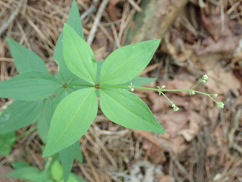 キヌタソウ 白系 2021.05.02 (アカネ科)(花色:白色)(季節)(特徴)花:茎頂の円錐状の集散花序に小さな花を多数つける。花弁は4枚、先が細く尖る。葉:卵状披針形、4枚輪生。。 2018.7.11 茅ヶ岳