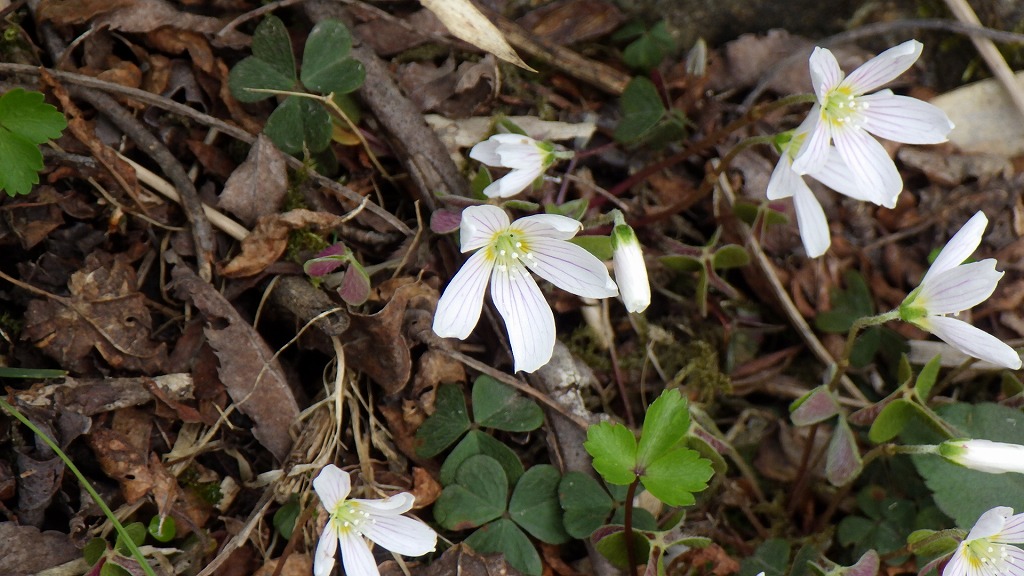 カントウミヤマカタバミ 白系 2021.05.022021.05.19 (カタバミ科)(花色:白色)(季節)(特徴)長柄のある3小葉は根生し、小葉の先端は切形で中央がへこみ、かどはは鈍端。ミヤマカタバミに似るが葉裏の毛は少ない。葉は、暗いと閉じる睡眠運動をします。 (付記) 2017.6.9 谷川岳