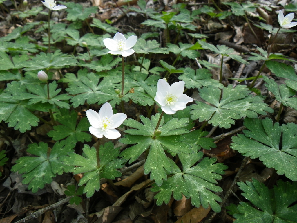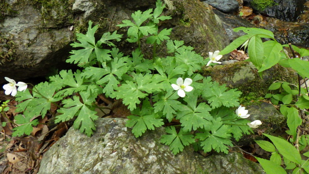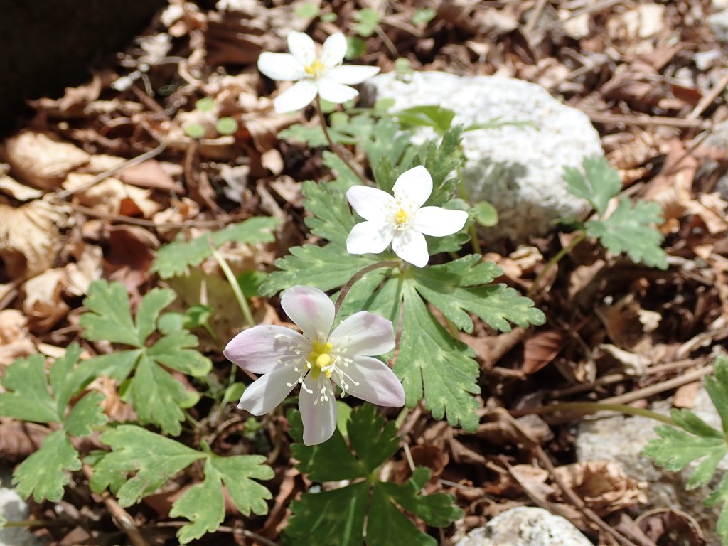 ニリンソウ 白系 2021.05.052021.05.13 (キンポウゲ科)(花色:白色が主流だが、ピンクがかったものもある)(季節)(特徴)花弁は5枚が多いが6枚もある。(付記)イチリンソウには葉柄があるが、ニリンソウには葉柄がない。 2021.05.04塔ノ沢