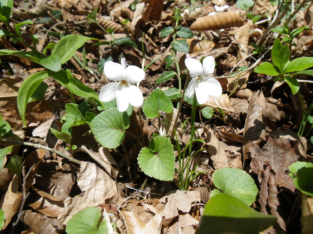 マルバスミレ 白系 2021.05.052021.05.19 (スミレ科)(花色:白色)(季節)(特徴)花:紫色の筋がある。(付記)茎の高さは5~10センチで、花柄や葉に毛が多い 2019.4.28 西上州天狗岩2014.4.13筑波山
