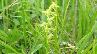 緑系 キソチドリ (ラン科)(花色:ウス緑)(季節)(特徴)(付記)ホソバとの違いがよくわからない。下の写真は葉が細葉とは言えない。花の形状で分けるらしいがよくわからない。2021.7.17 三岩岳 2021.7.17 三岩岳 2021.7.17 三岩岳 2... 2021.07.21 緑系