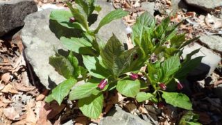 (ナス科)(花色:暗紫紅色)(季節)花は4~5月。釣鐘状。(特徴)(付記)毒草。 湿った木陰に群生。2019.04.13 西上州毛無岩