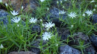 (ナデシコ科)(花色:白色)(季節)7-8月(特徴)花:5花弁だが、2つに深く裂けるので10枚のように見える。 葉:線形で長さ2-4cm(付記)2018.7.18 小赤石岳2016.7.22 白山2016.7.22 白山