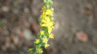 黄系 キンミズヒキ (バラ科)(花色:黄色)(季節)(特徴)キンミズヒキは葉が尖るが、ヒメキンミズヒキは尖らない。花後は棘のある実が付く。2019.08.24 御岳山2019.08.24 御岳山2022.10.08 筑波山 2021.05.02 黄系