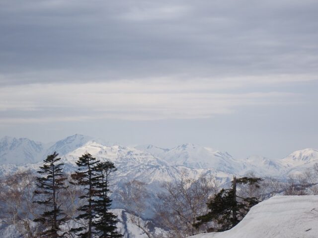 その右からは後立山連峰が時期柄くっきりとは言い難いのですがきれいに見えました。鹿島槍から白馬、朝日岳まで見えます。