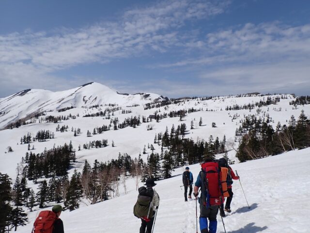 sakumaさんを先頭に緩やかな傾斜の雪原を上っていきました。
