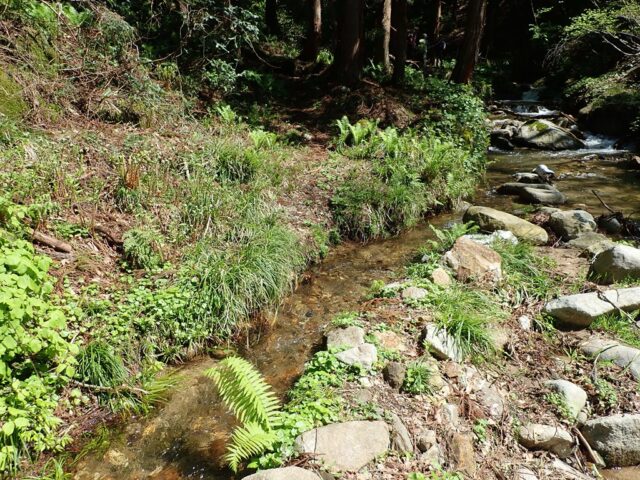 このルートは渡渉が難しいときだけに利用させてもらう事にしましょう。その細い道は、一般道で一番面倒な渡渉地点の横にでます。細い水路を跨ぐだけで、面倒な渡渉を避けることができました。