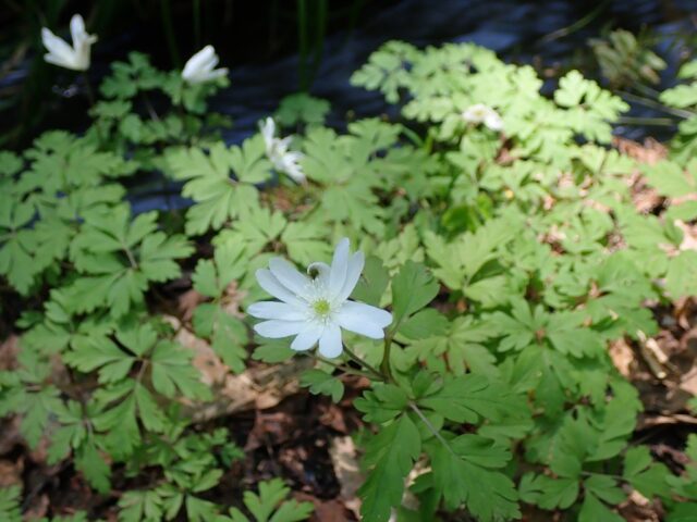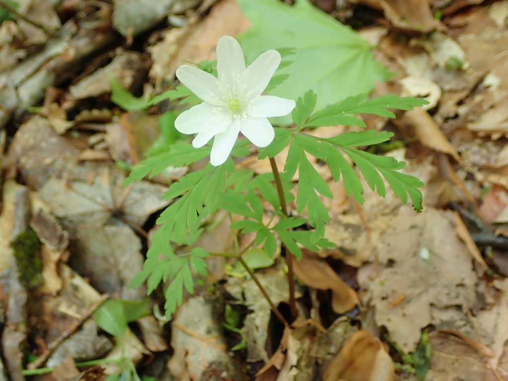 下山時には花をじっくり味わいました。沢筋には花が多いのです。エゾエンゴサク、ミヤマカタバミ、エンレイソウなどを楽しむことができました。