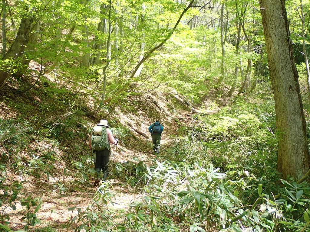 鹿沼を6時に出て、那須高原SA、磐梯山SAで休憩して西会津ICで高速を降りました。そこから中ノ沢集落までの道のりは何度来ても分かりづらいのですが、ナビに導かれて進めました。登山口駐車場がぬかるんでいるので手前の狭い空き地に駐車。ゆっくりと準備をしていると5-6人のグループが山に入っていきました。長靴を履いていましたので、ぬかるんだ登山道、渡渉に対応するためでしょう。
