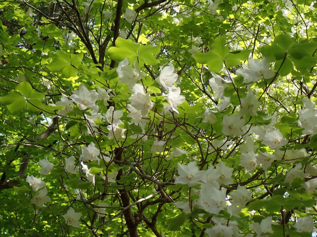 谷川馬蹄形計画が雨で中止になったので、矢板「たかはら」へシロヤシオを見に行きました。シロヤシオは大入道ではすでに花の見頃は過ぎていましたが、標高が高い場所では丁度見頃でした。今年はシロヤシオなどツツジの花の出来が良いようです。賑やかな5人旅です。