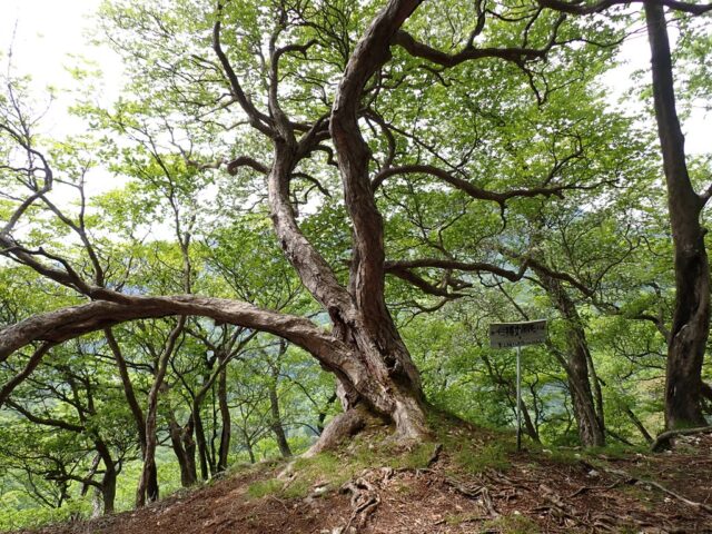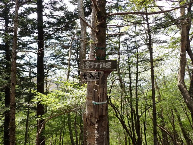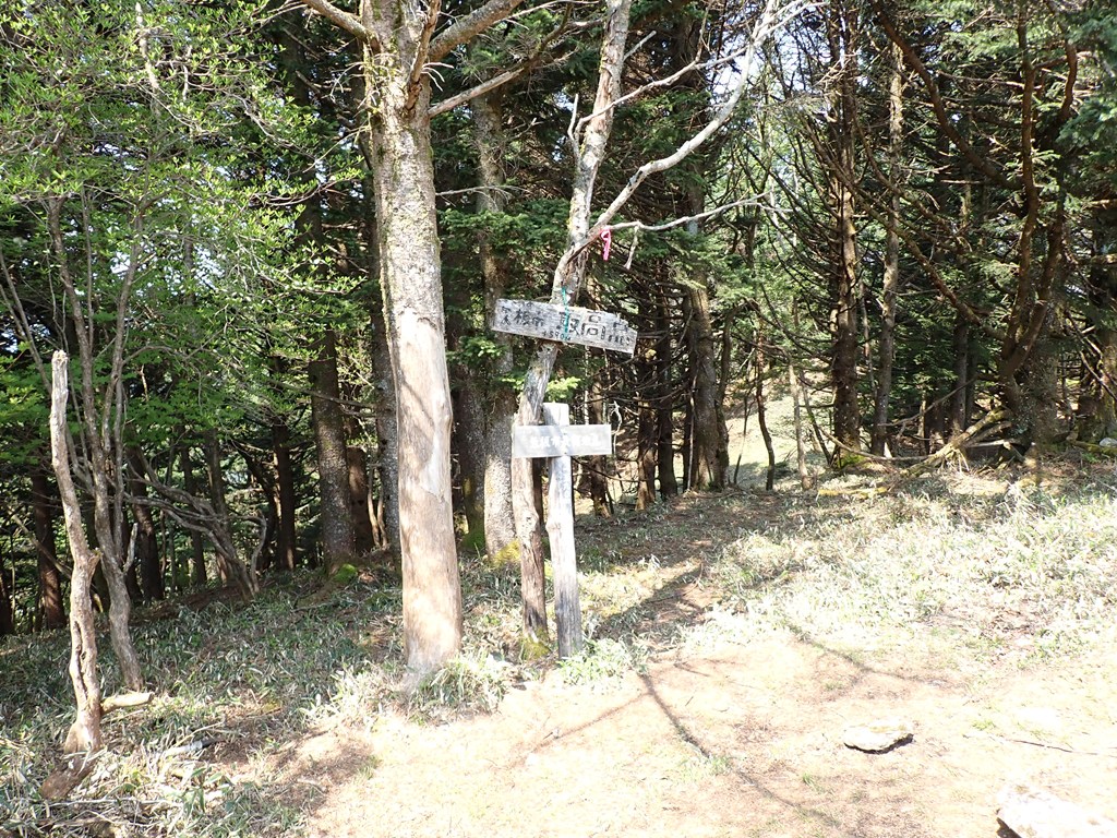 シロヤシオの尾根を剣ヶ峰まで下ってきた。そのピークで小休止。