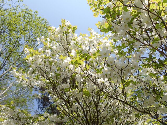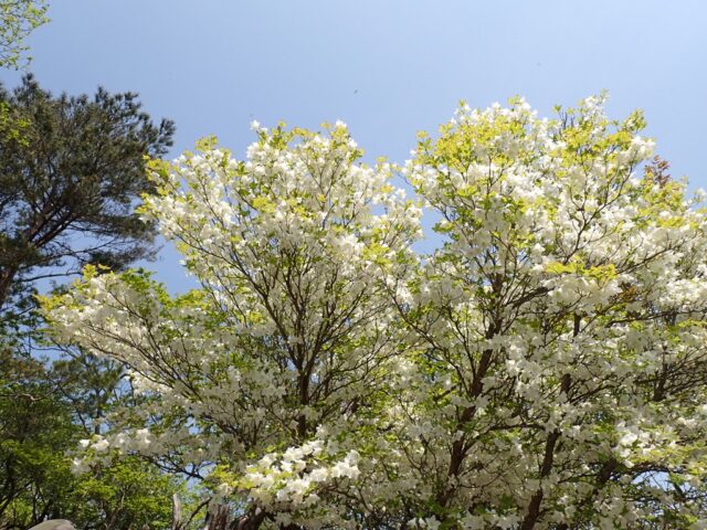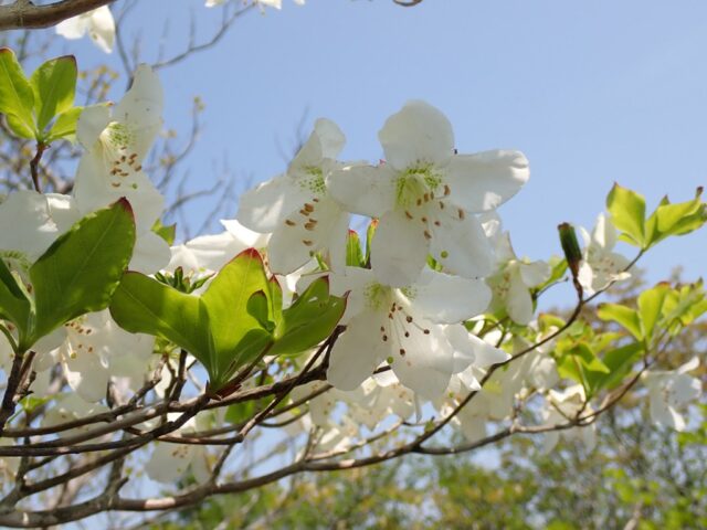 林道をミツモチ方向に少し歩くと、ヤマツツジに混じってシロヤシオも咲いていました。