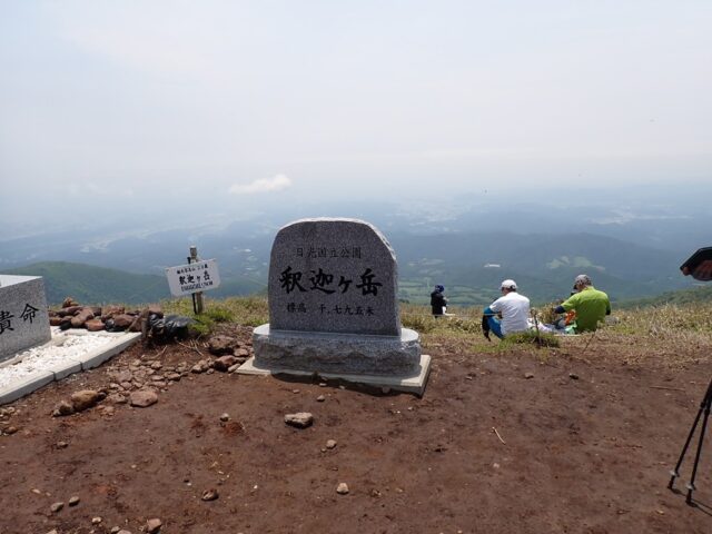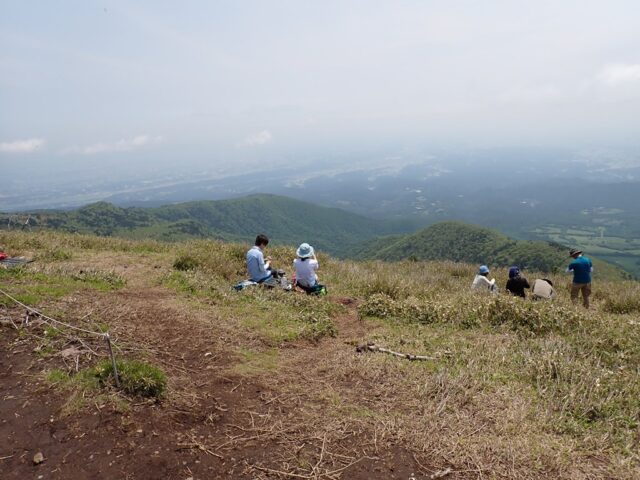 山頂にはすでに10人近くが休んでいました。少し霞んでいますが関東平野北部を見下ろすことができます。私たちもその片隅で大休止しました。