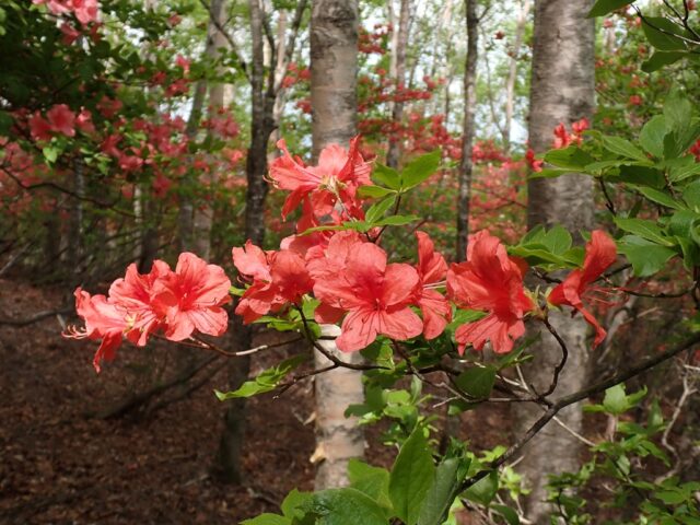 剣ヶ峰分岐からもずっとシロヤシオは密度は濃くなったり薄くなったりしますが、釈迦ヶ岳の急登が始まる辺りまでヤシオを楽しむことができました。