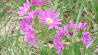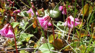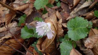 (イワウメ科)(花色: 薄いピンク)(季節)花・春(特徴)葉は広円形または広楕円形で鋸歯がある。基部は心形。似た花のトクカワソウは基部が心形でない。本州中部~近畿の日本海側。2017.04.12高萩横根山2021.7.17 三岩岳