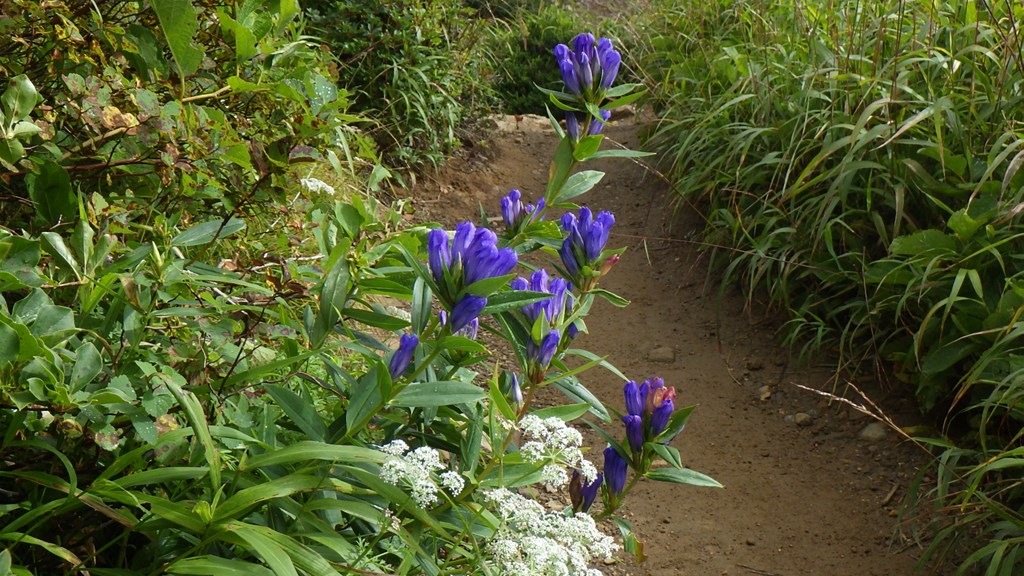 エゾリンドウ 青系 2021.05.092022.09.17 (リンドウ科)(花色:青)(季節)(特徴)エゾリンドウは何段にも花を付けるが、オヤマリンドウは普通は茎頂にしか花を付けない。(付記) 2022.09.12 那須