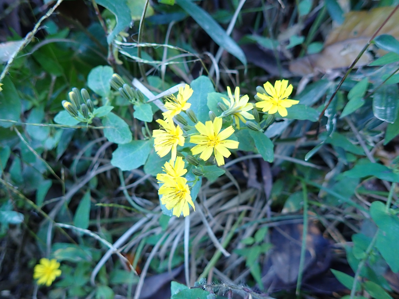 ヤクシソウ 黄系 2022.09.302024.11.07 (キク科)(花色:黄色)(季節)8-11月。(特徴)花はハナニガナに似るが、葉が全く異なる。丸みがあり、茎を巻く。 2023.09.26 嵩山 2024.11.07 太平山桜峠