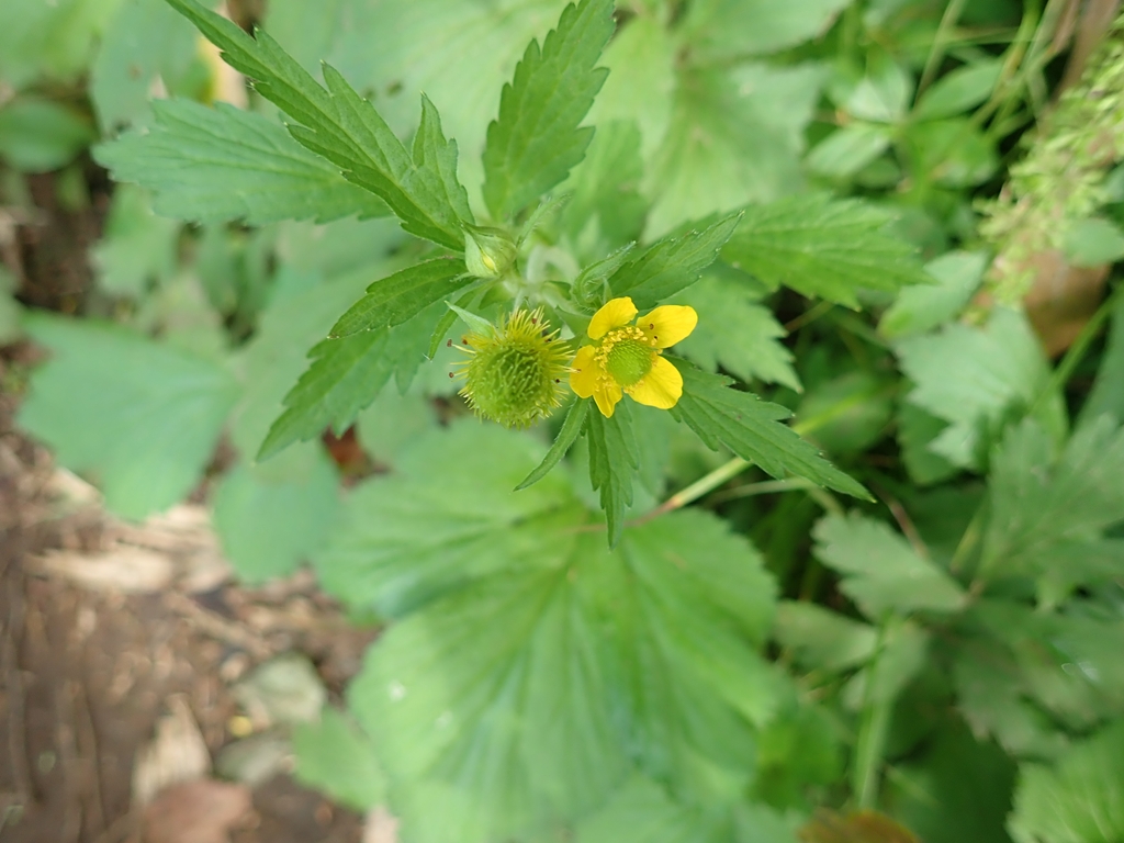 (特徴) キツネノボタンに似るが、実に毛が多い。。キツネノボタンの実はコンペイトウのようだ。