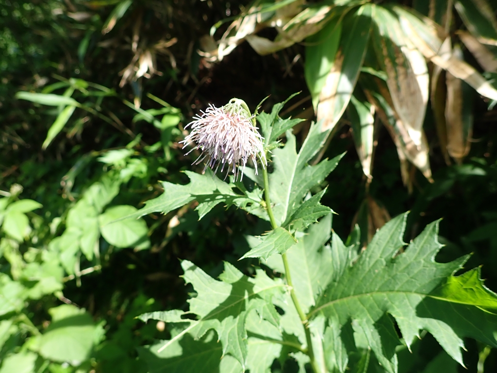 エゾサワアザミ 赤系 2023.08.24 (キク科)(花色:ピンク)(季節)7-8月。0.5-1.5m (特徴)北海道。低地~山地の湿地などに生え、茎の高さは0.5~1.5メートルで、上部に蜘蛛毛がある。。茎頂に淡紅紫色の頭花を下向きにつける。総苞は扁球形で多少くも毛がある。根生葉は羽状に全裂し裂片は線状披針形でトゲがあり、花時には枯れる。中葉も羽状に全裂する。 2023.8.2 羊蹄山