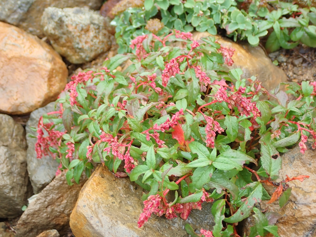 花は枝先に円錐状の偽総状花序となって集まり、多数つく。花被片は淡黄白色または淡紅紫色を帯び、5深裂し、裂片は長さ2.5~4mm。雄しべは8個、花被片より短い。花柱は3個。