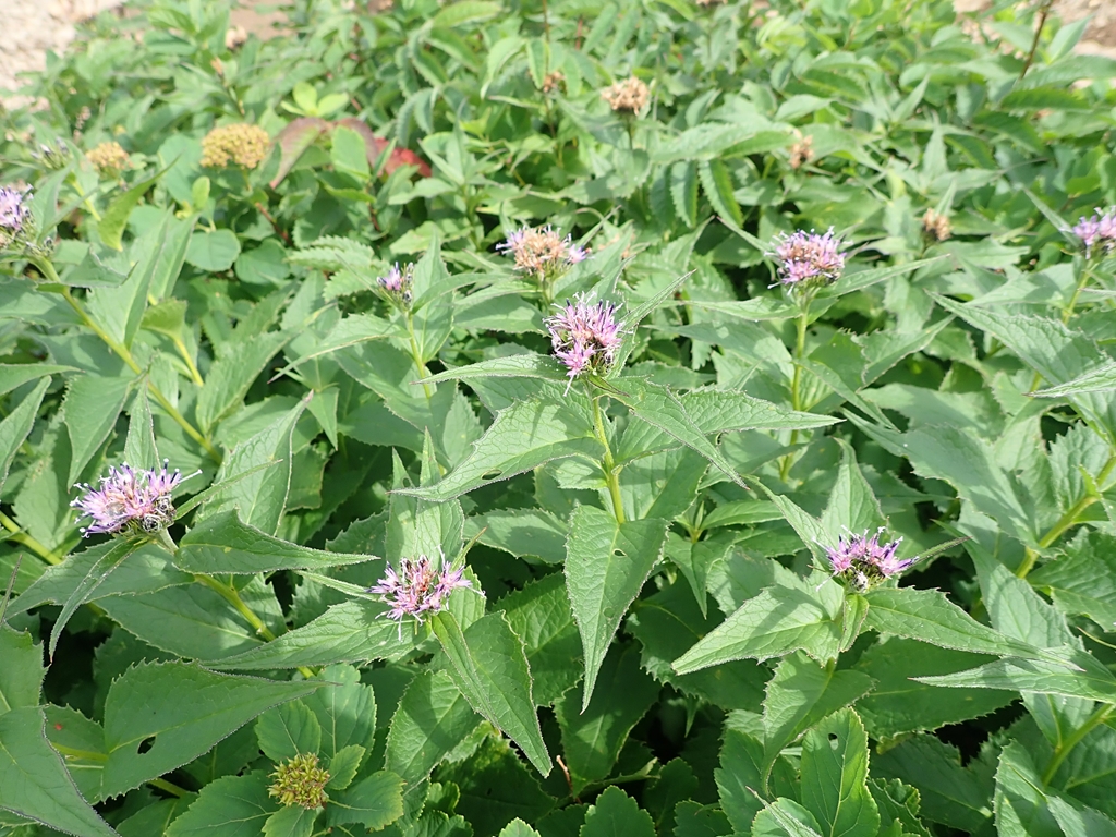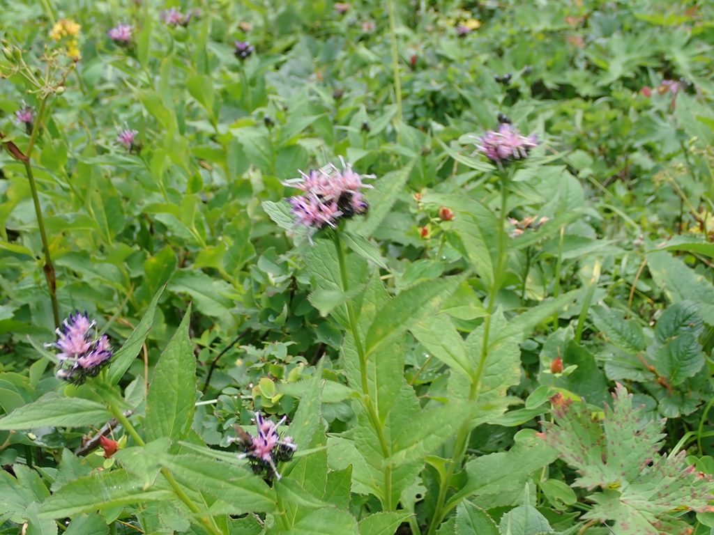 ナガバノキタアザミ 赤系 2023.08.242023.08.26 (キク科トウヒレン属)(花色:赤紫)(季節)8-9月。10-40cm (特徴)北海道。本州北部。亜高山帯~高山帯の砂礫地や草地に生える多年草。群生することが多い花です。茎先の散房状花序に淡紅紫色の頭花を密に付けます。葉は三角状卵形で基部は細い翼状になります。 2023.8.4 斜里岳 2023.08.10 幌尻岳