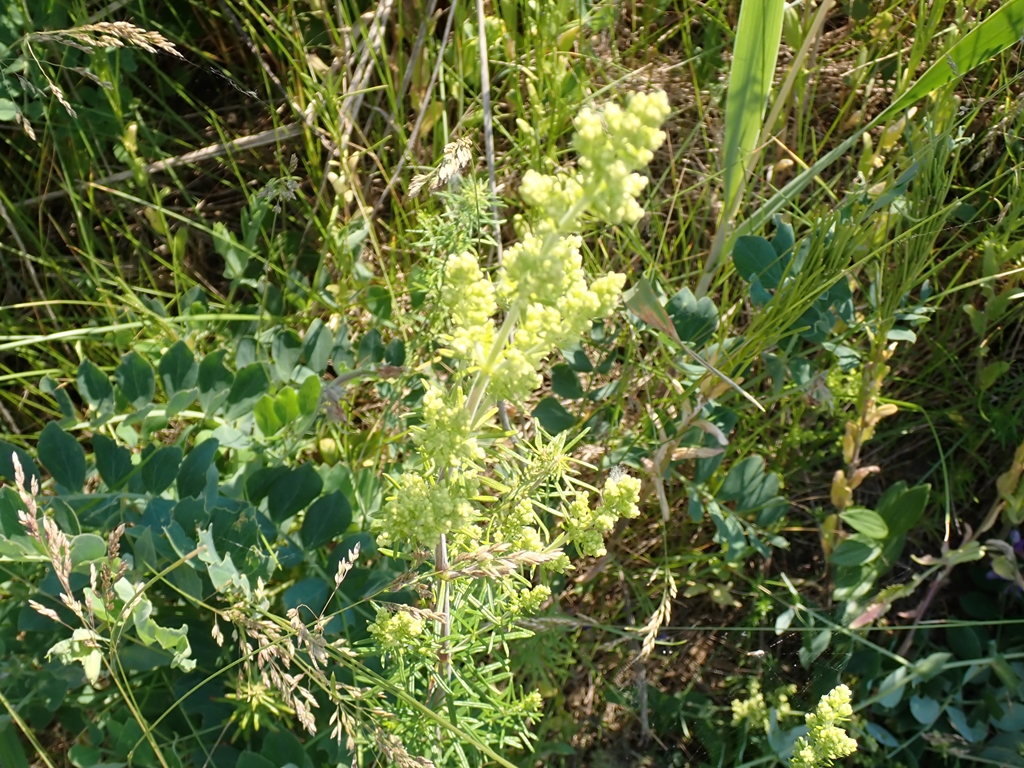エゾノカワラマツバ 黄系 2024.07.15 (アカネ科)(花色:白色)(季節)(特徴)山地の岩場、河原、海岸草地などに生え、茎の高さは30~80センチ。茎や葉には毛がある。茎先や葉腋の円錐状花序に、直径2ミリほどの黄色の花を多数つける。花冠は4裂し、平らに開く。葉は線形で、8~10個輪生する。果実は毛が密に生える。 2024.06.29 小清水原生花園