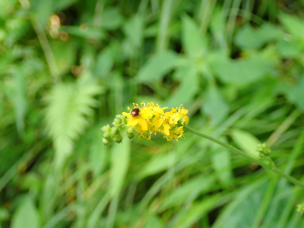 キンミズヒキ 黄系 2021.05.022022.10.11 (バラ科)(花色:黄色)(季節)(特徴)キンミズヒキは葉が尖るが、ヒメキンミズヒキは尖らない。花後は棘のある実が付く。 2019.08.24 御岳山 2019.08.24 御岳山 2022.10.08 筑波山