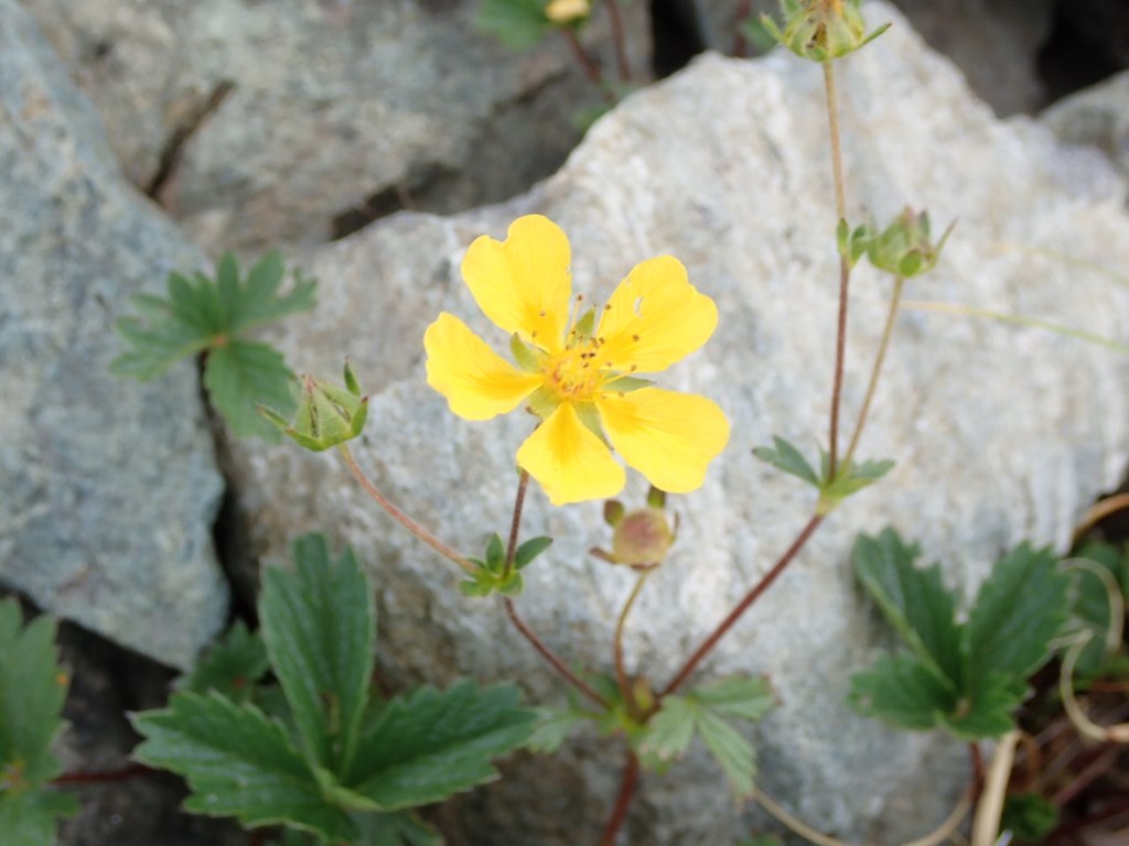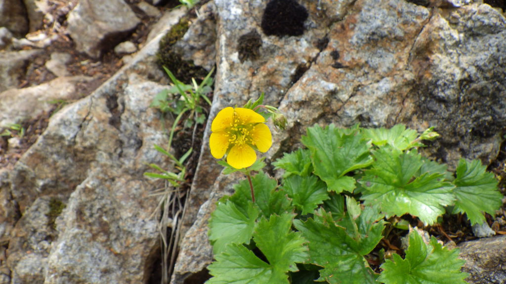 | ミヤマキンバイ | 黄色で梅に似た5花弁。 | イチゴにそっくりの3小葉。小葉は1.5*3.0cmの倒卵形。荒い鋸歯がある。 | バラ科。高山帯 |