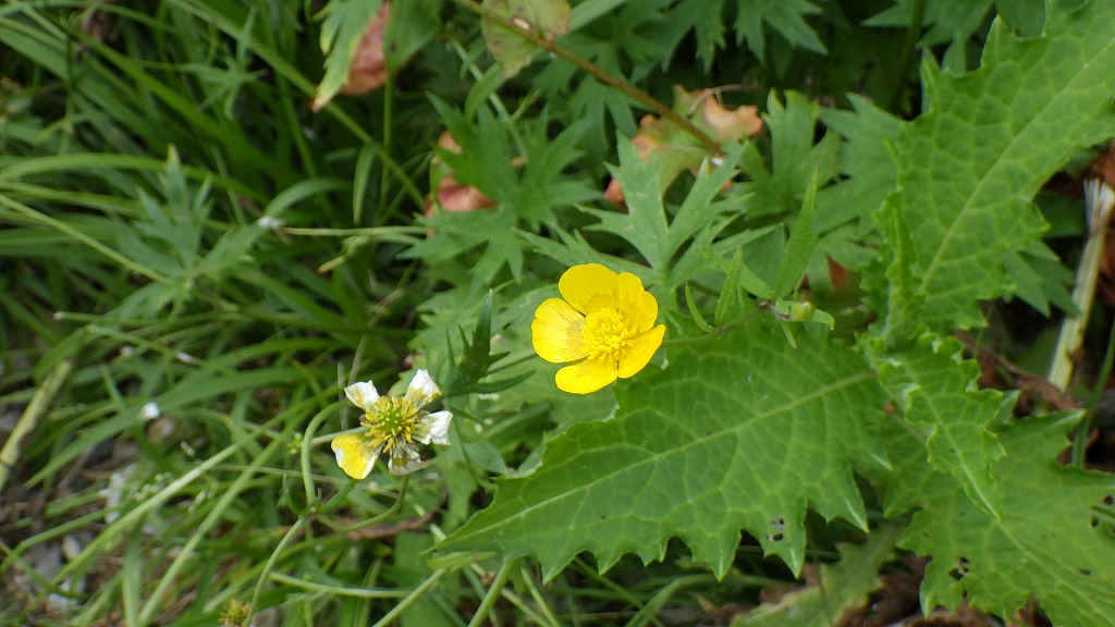 | クモマキンポウゲ | 小さく7mm。萼片の外側に白色の毛。 | 根生葉は単葉で丸形で先が5-7裂する。 | キンポウゲ科。8月。 白馬山系 |